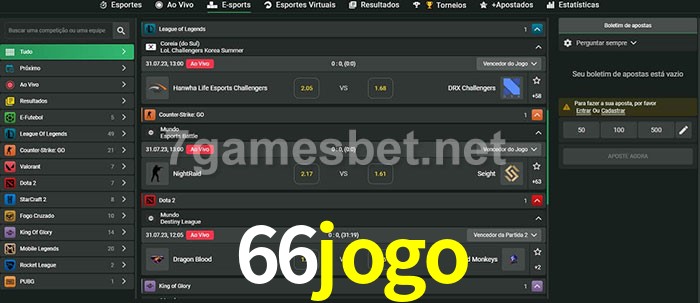 O 66jogo oferece uma grande seleção de opções de apostas em e-sports com probabilidades competitivas